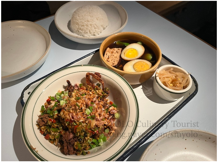 선택한 고기 또는 해산물과 달걀을 올린 매콤한 맛의 덮밥으로, 태국 가정식의 대표 메뉴 중 하나입니다.
